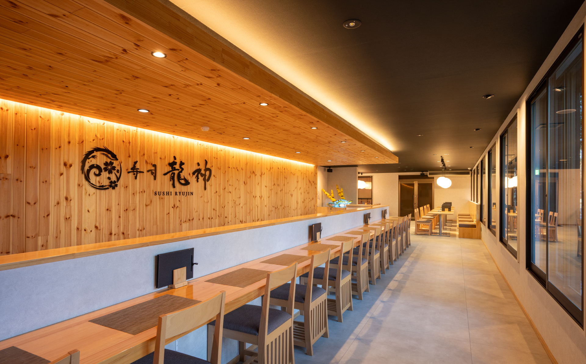 さらに2025年7月には、地域に夜間営業の飲食店がほとんどないという課題に向き合い、併設の寿司店「寿司龍神」を開業しました。